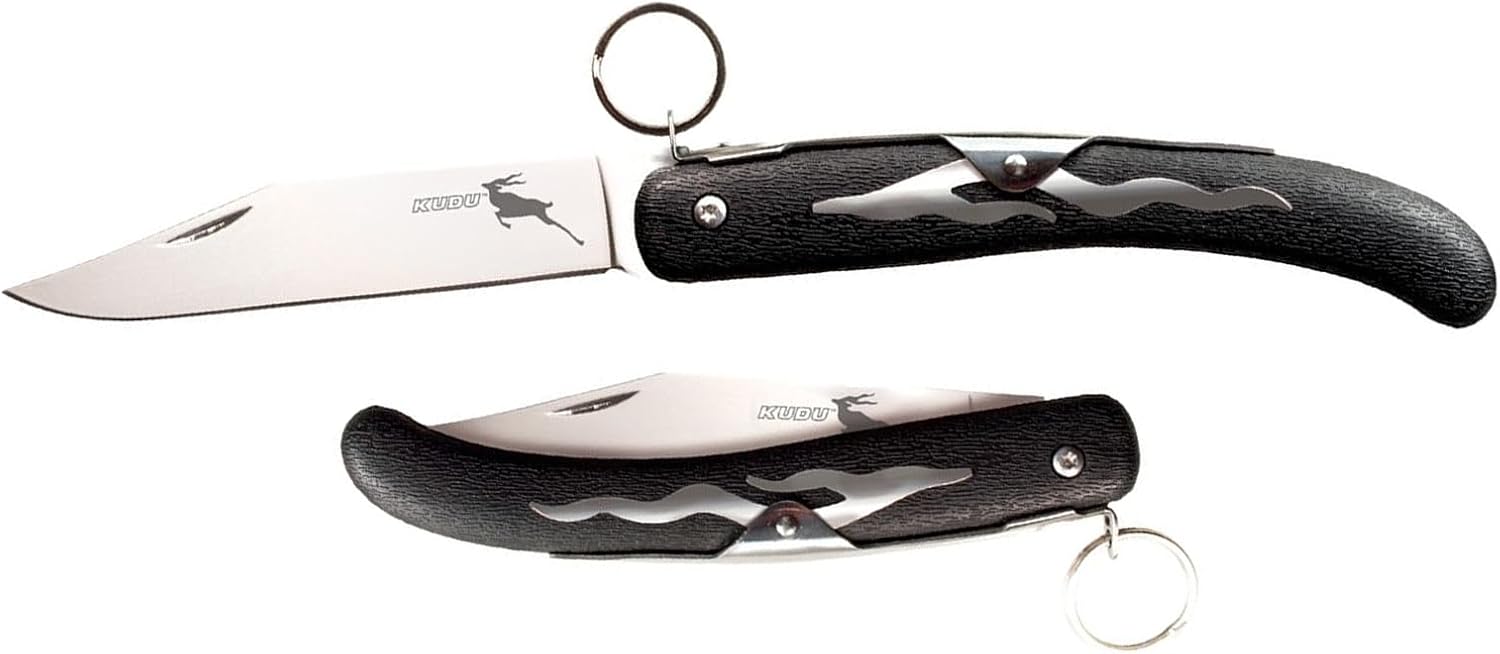 Editor's Pick: This Kudu folding knife is crafted from 5Cr15MoV steel with a sharp blade. It has a total length of 10 inches, with a 4.25-inch blade. The handle is 5.75 inches long and made of Zy-Ex material. It features a ring lock mechanism that ensures safe usage, making it suitable for everyday carry.