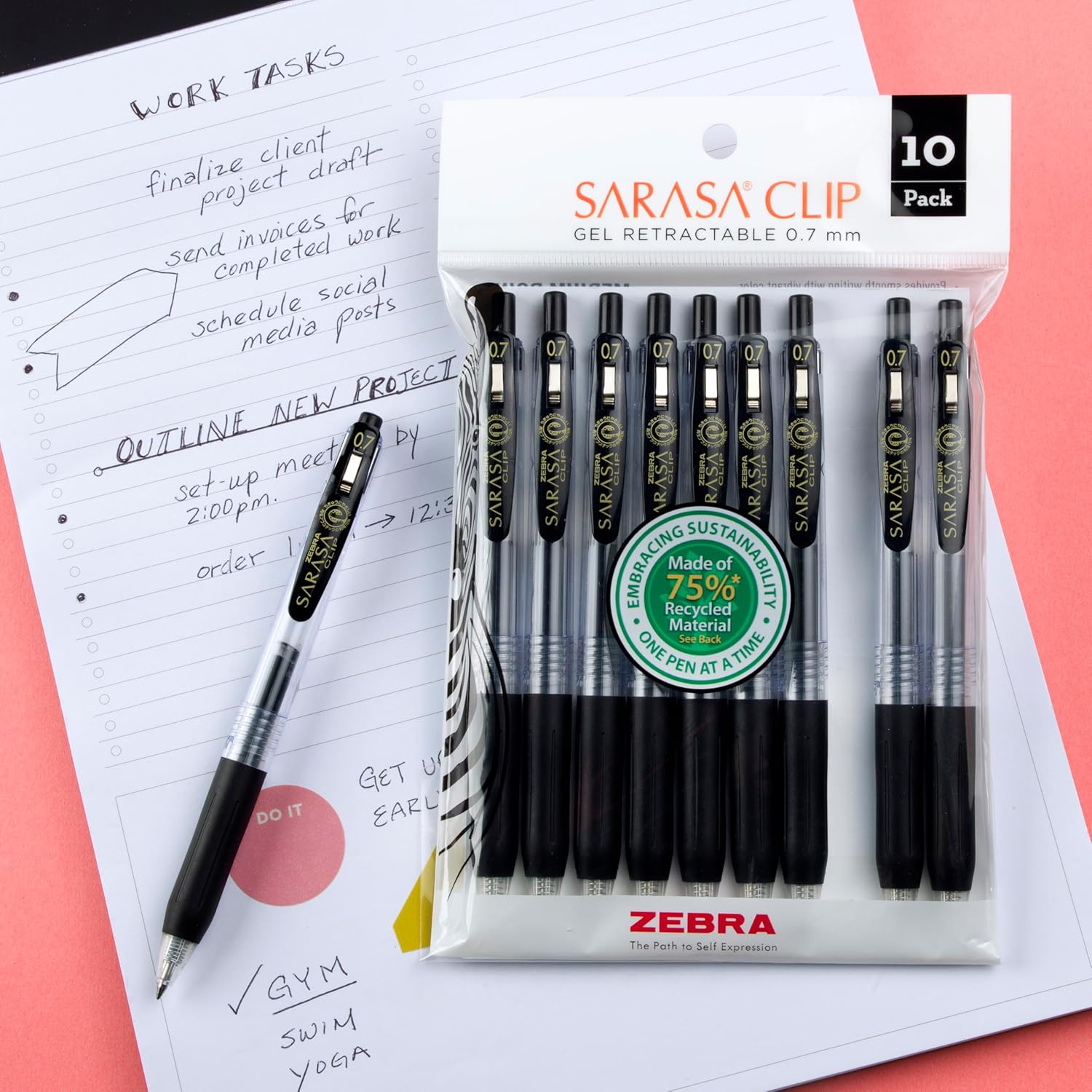 Zebra Pen Zebra SARASA Clip Gel Pens 0.7mm Black 10-Pack