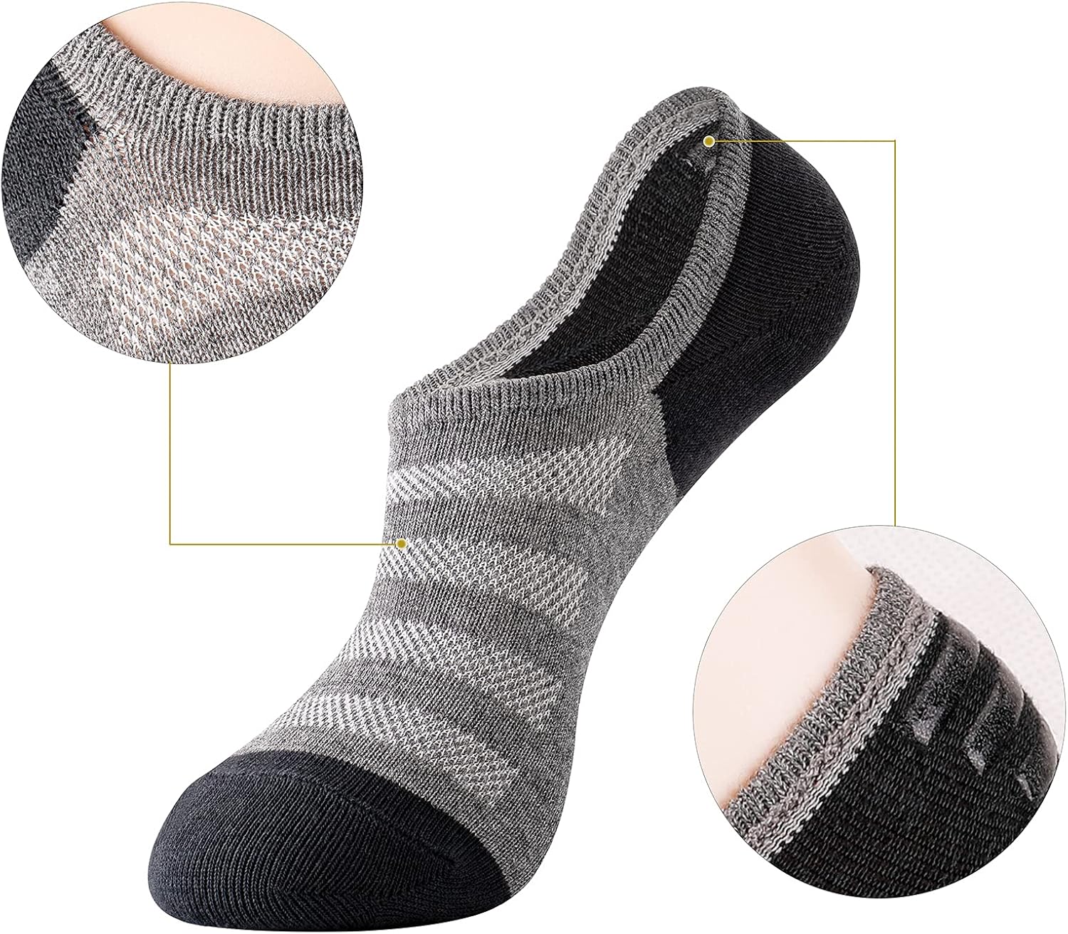 Editor's Pick: These men's no-show socks feature a low-cut design that stays hidden when wearing shoes. The socks have anti-slip silicone dots on the heel to effectively prevent them from sliding down, making them ideal for pairing with sneakers or casual shoes during daily activities or light exercise.