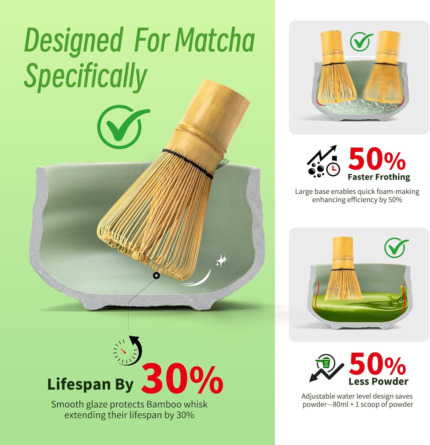 TEANAGOO Matcha Whisk Set 7 Pieces Green