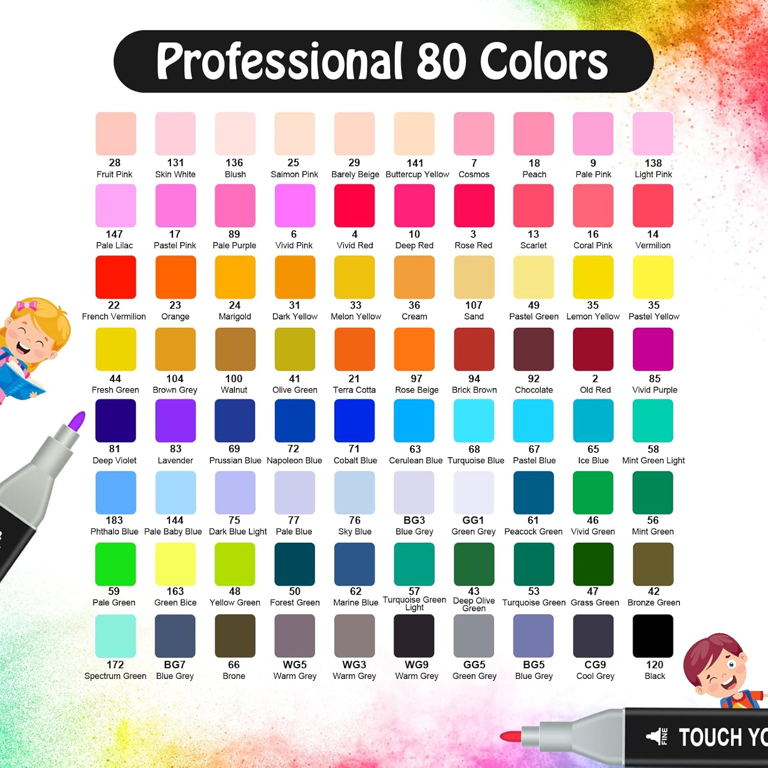 Editor's Pick: This set of dual-tip alcohol-based markers offers 80 vibrant colors, perfect for both children and adults' drawing and sketching needs. The dual-tip design allows for both broad coloring and detailed line work. The ink dries quickly without smudging and meets various international safety and environmental standards. The caps feature color coding for quick identification and selection, and the set comes with a storage case for easy organization and portability.