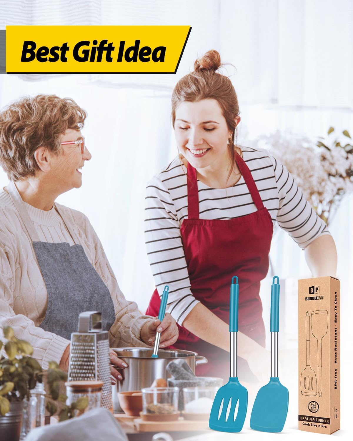 BUNDLEPRO Silicone Turner Set 2 Pack Blue High Heat Resistant
