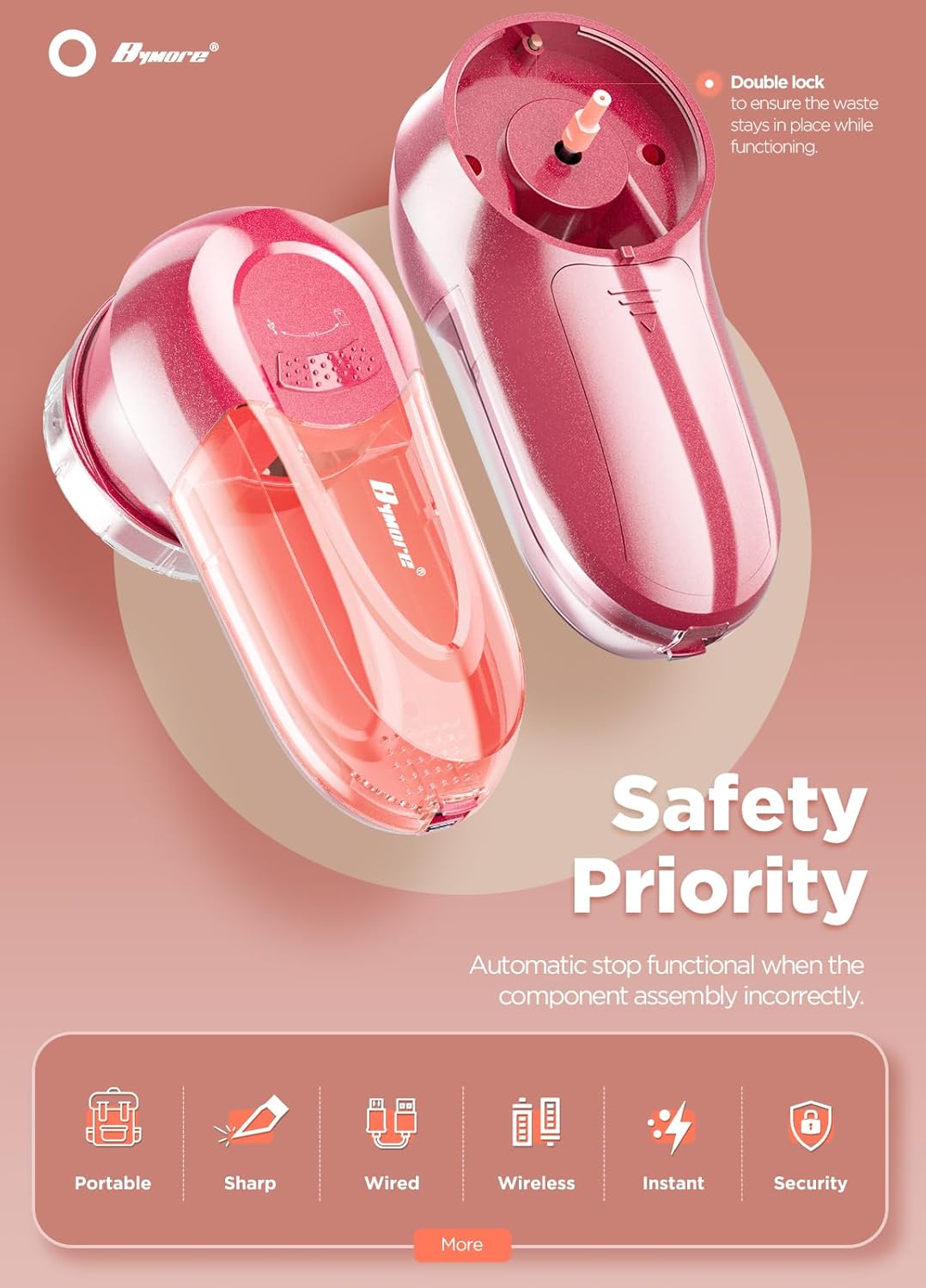 Editor's Pick: This fabric shaver features a three-size honeycomb surface and adjustable height design, suitable for different types of pills on clothes and furniture without damaging fabrics. It offers convenient dual power options - battery operated or with a 6-foot AC power cord. Equipped with a motor that spins up to 9000 RPM and an efficient vacuum system, it quickly removes fuzz without clogging. The sharp blades come with two replacement blades. The collection container has a double-lock design to prevent debris from spilling during use.