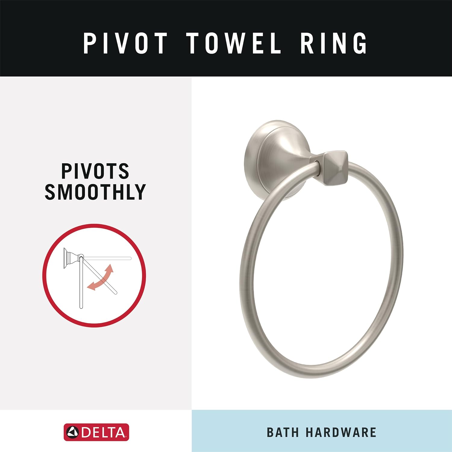 Editor's Pick: This towel ring features a corrosion-resistant brushed nickel finish that effectively prevents rust and fading, ensuring long-lasting durability. Its simple round design complements any bathroom or kitchen style. Installation requires only a Phillips screwdriver, and it comes with all necessary hardware and instructions, making it perfect for DIY projects. Designed to match the Delta Esato series faucets and accessories, it helps create a cohesive and coordinated home space.