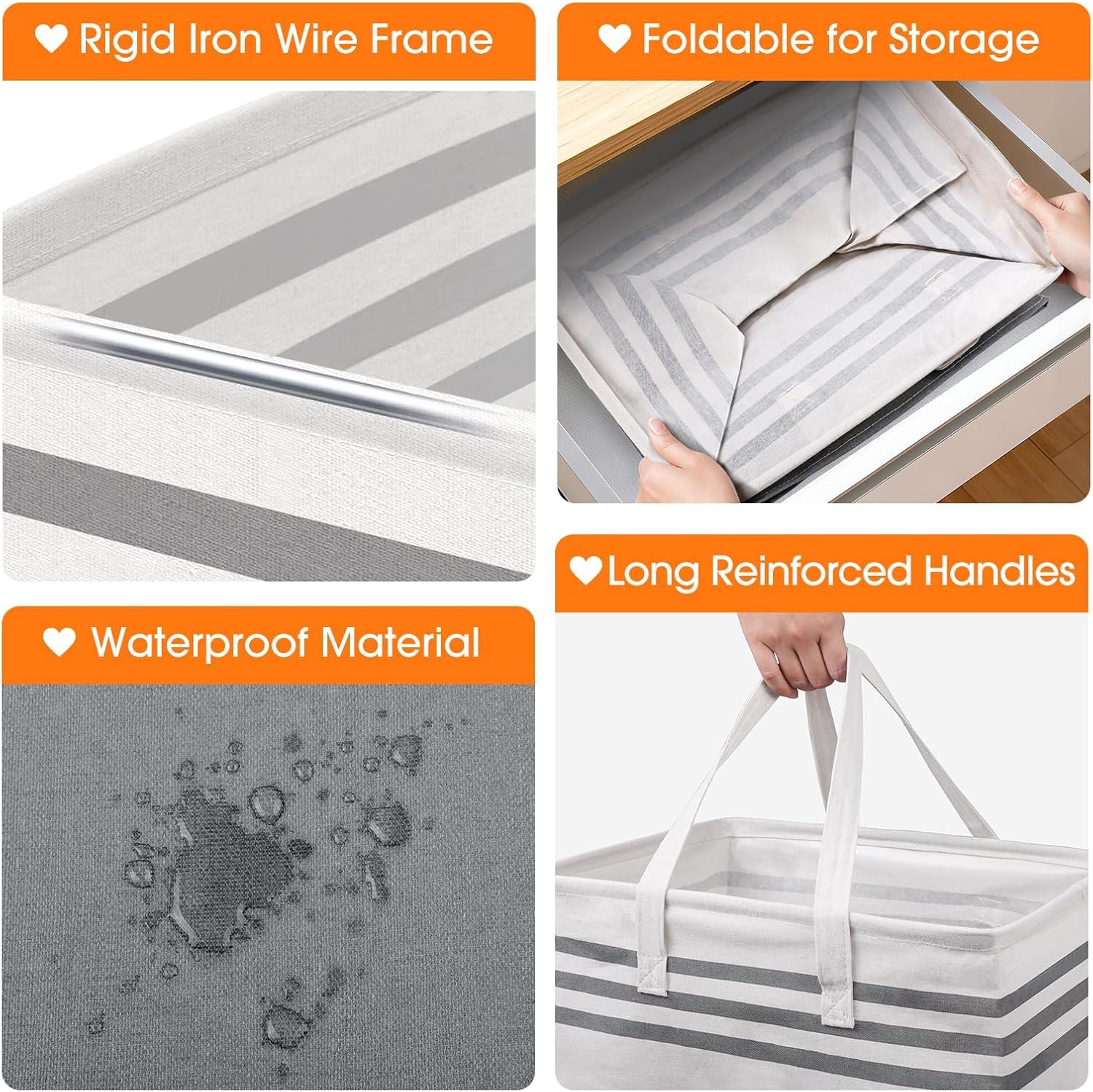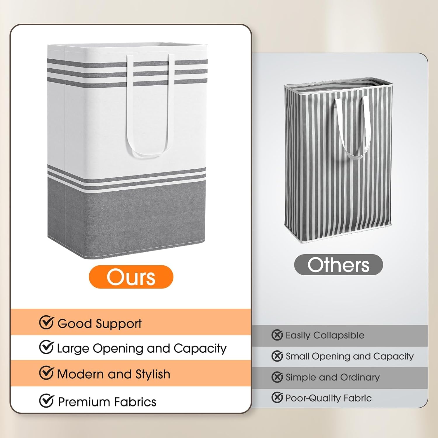 Editor's Pick: This laundry hamper features a cotton-linen exterior with a thickened PEVA waterproof inner lining, making it easy to clean while preventing moisture and odors. The top edge has an embedded sturdy metal frame that allows it to stand firmly even when empty, with no assembly required. Its foldable design makes for easy storage, saving space. Extended and reinforced dual handles allow for convenient carrying with one or both hands, making it suitable for bedrooms, bathrooms, laundry rooms, and student dorms.