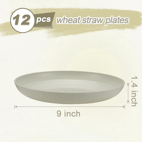 HEYCOME 9 Inch Wheat Straw Plates Set of 12