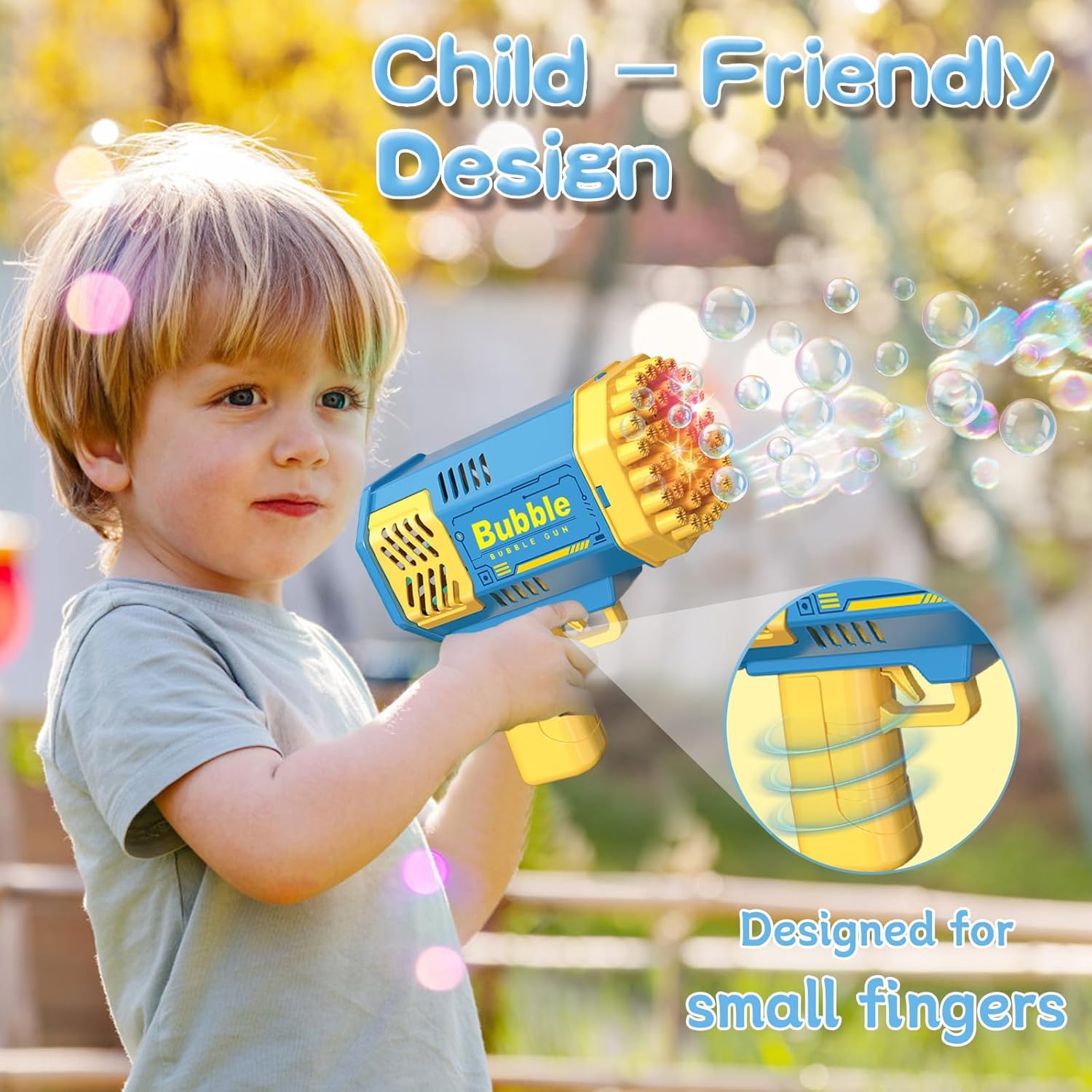 Editor's Pick: This second-generation bubble gun is specially designed for children, featuring a 40-hole nozzle that produces a large volume of bubbles every minute. It comes with built-in LED lights that add a colorful glow to the bubbles during play. The set includes two bubble guns and two refill bottles, perfect for sharing. Made from durable, child-friendly materials, the gun is lightweight, easy to grip, and simple to operate, making it ideal for family gatherings or outdoor activities. Please note that four 1.5V AA batteries are required but not included.