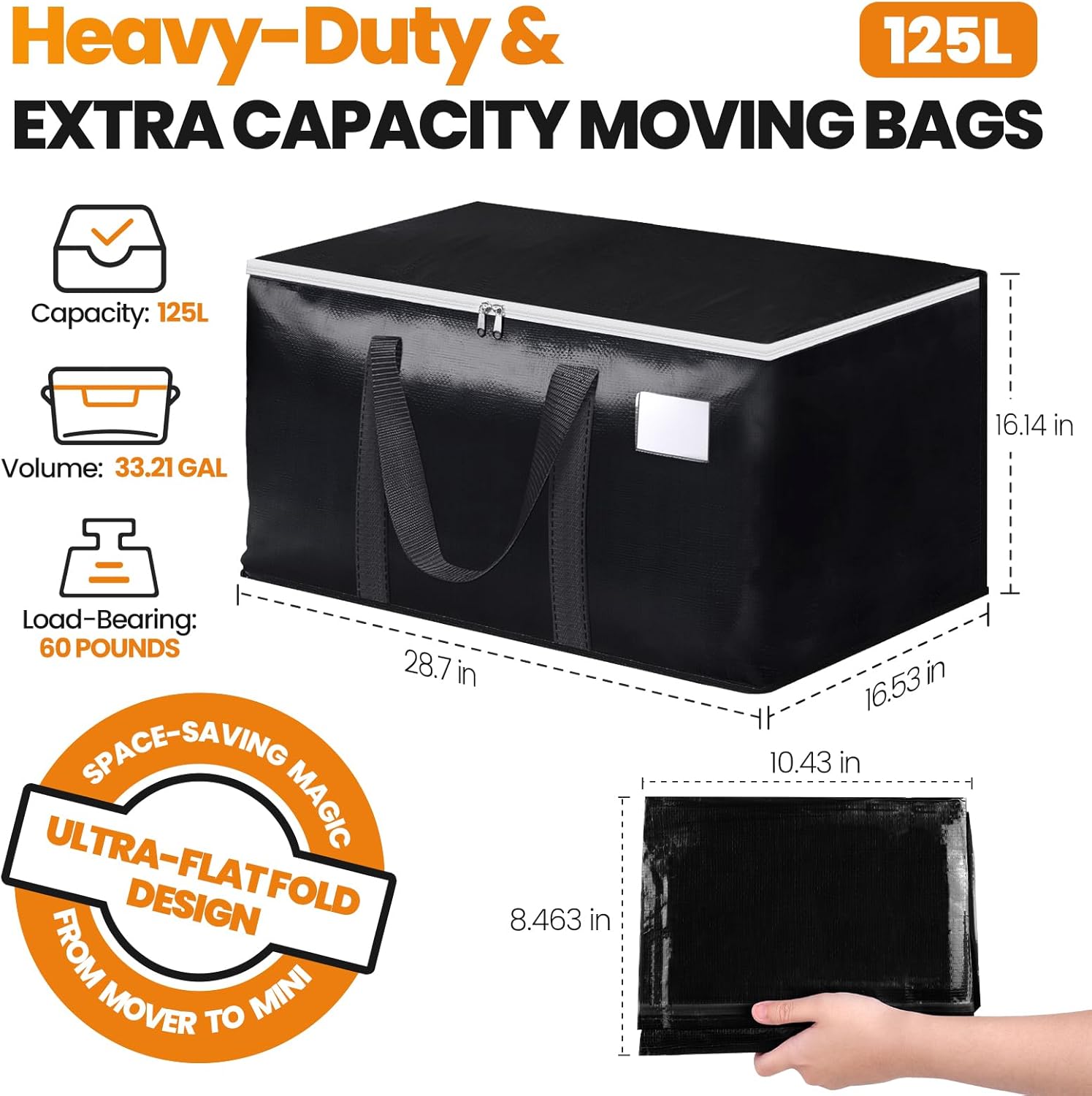 Editor's Pick: These large capacity moving bags offer 33 gallons (125 liters) of storage space per bag and can hold up to 60 pounds, perfect for transporting clothes, bedding, and other bulky items. The design features both backpack straps and hand-carry handles for flexible carrying options. With dual zippers and reinforced handles, these bags are built for durability.
