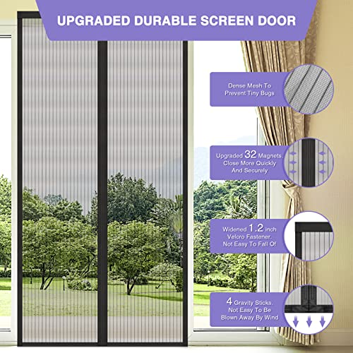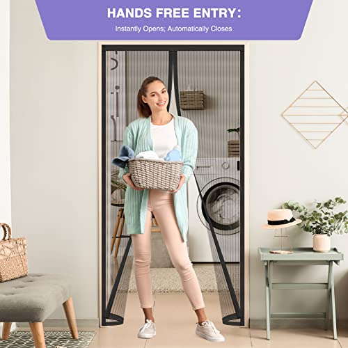 Editor's Pick: This magnetic door curtain features upgraded high-density mesh fabric with reinforced edges for enhanced durability. It contains 32 powerful magnets for quick and quiet closure, plus gravity weights at the bottom to effectively prevent wind interference. Its expandable design makes it convenient when carrying items with both hands, and it's pet and child-friendly. Easy installation with included hook-and-loop fasteners and push pins, suitable for various door types up to 39 inches wide and 82 inches high.