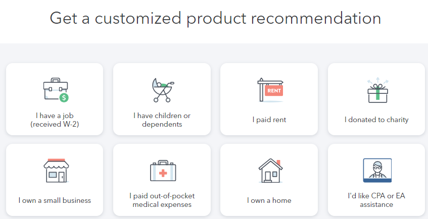 Not sure which one is right for you? Get a customized product recommendation by answering simple questions, and step-by-step guidance to get your taxes done right and maximize your tax returns.