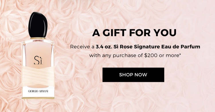 - Giorgio Armani Beauty offers receive a 3.4oz Si Rose Signature Eau de Parfum with any purchase of $200 or more.