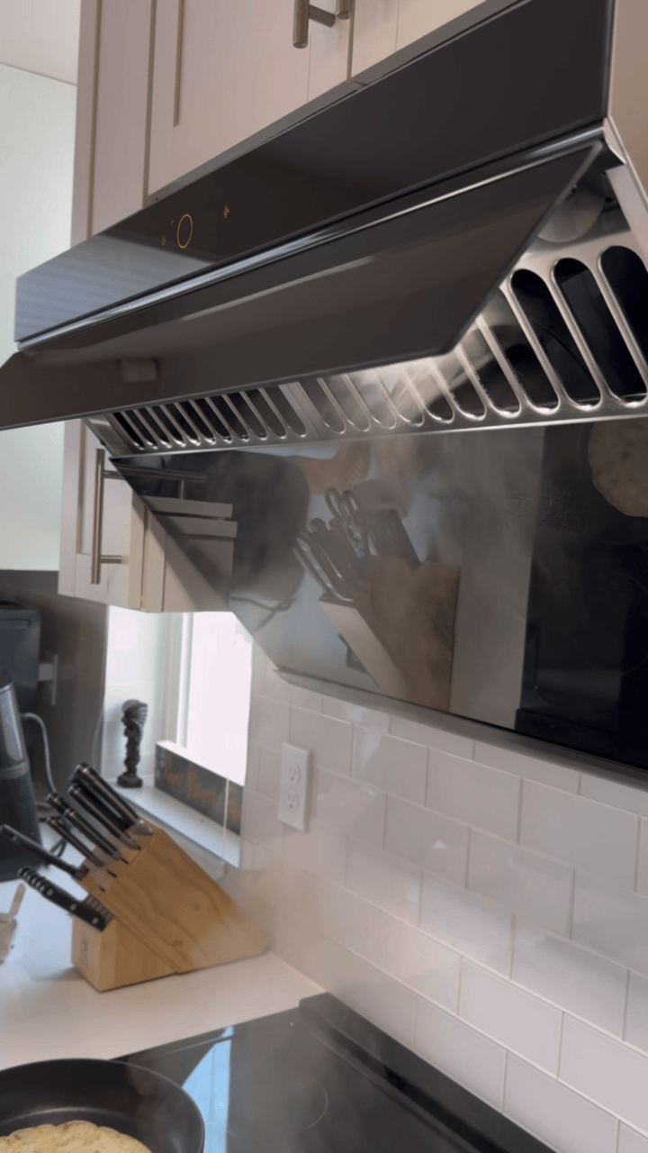 吸力真的大了好多🔥 以前厨房开火三秒就呛眼,现在能吸走90%的油烟。挥手开关也超灵敏,有四档风量调节,用的2档根本没有味道。