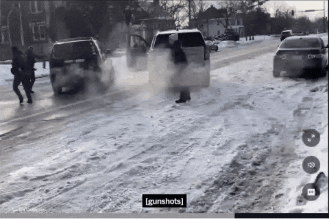 随后,他连续开枪射击。SUV 继续向前,并向右转弯。