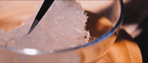 4. 顺着燕窝天然的燕丝纹理,将燕窝撕成粗细适中的细条丝状。