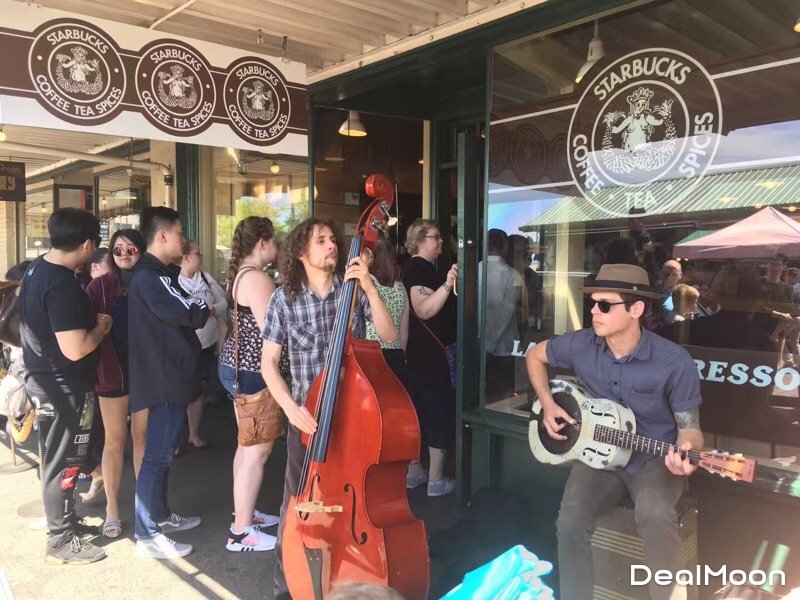 派克市场旁边坐落着世界上第一家星巴克,排队人不少,有没有发现这家的logo和别的星巴克不太一样😄